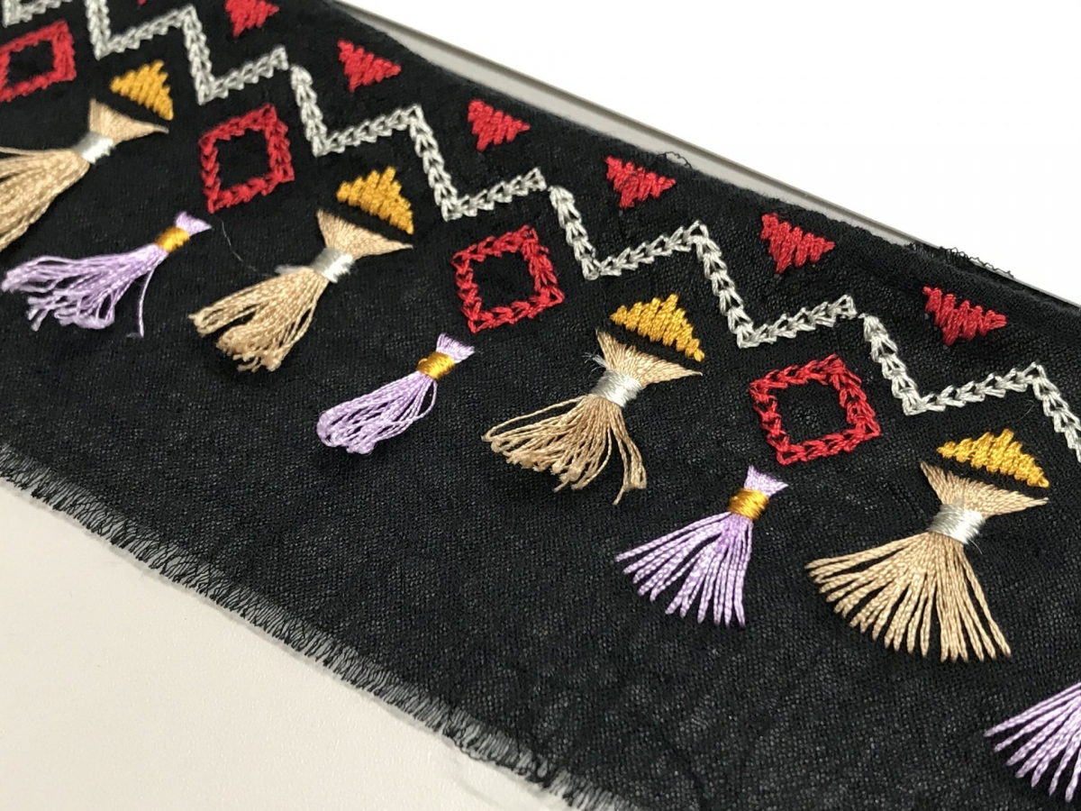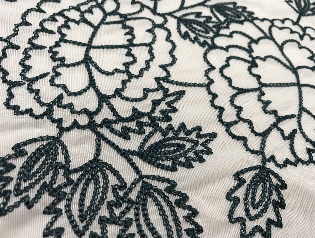 平刺繍は実に様々なバリエーションがあります。歩きのステッチ、サテン振り、タタミなどの基本的な刺繍の打ち方の組み合わせ方を変えるだけで全く違った雰囲気に仕上がります。